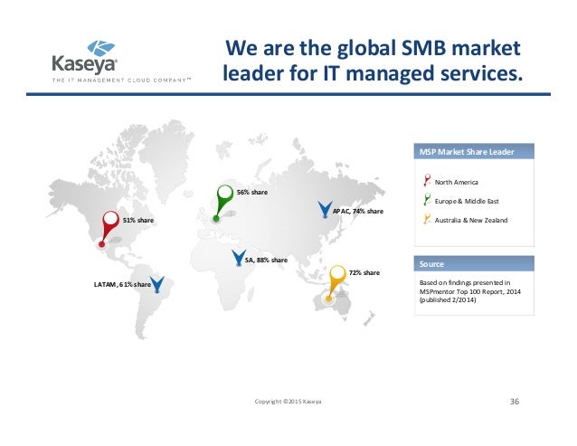 Kaseya, a market leader in IT management software, focuses on helping MSPs and mid-sized enterprises better manage their IT infrastructure to drive the success of their businesses. Learn More. ... Visit Document